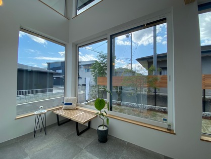 サンルーム土間で日中溜め込んだ日射熱を、夜には暖房のように室内を暖かくなるよう設計しました。
